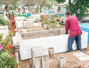 do en el campo santo y dedicado a la albañilería, mostró los puntos donde en este momento pueden excavar, teniendo que hacer de una profundidad de 1.2 a 2 metros. “Nos asignan una zona, así como aquí, llena de escombros, raíces, nosotros tenemos que excavar, para poder sepultar aquí, se mueve el escombro se hace a un lado y se mueve, con una retro o un volteo, el costo de la bóveda, normalmente, hay que