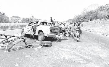 Lo anterior, generó que la unidad se impactara contra el muro de contención para posteriormente volcarse sobre la carretera en dirección a Acayucan. De acuerdo con los datos recabados, los elementos que iban en la batea salieron proyectados contra el pavimento sufriendo varias fracturas.