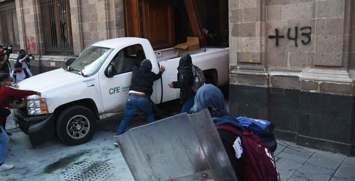 A LA 2 ROMPEN NORMALISTAS PUERTA DE PALACIO; VE AMLO PROVOCACIÓN Un grupo de normalistas de Ayotzinapa rompió una de las puertas laterales de Palacio Nacional mientras el Presidente AMLO ofrecía su conferencia. PASE A LA 4