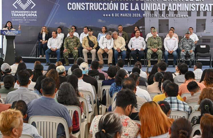 El gobernador Eduardo Ramírez Aguilar inauguró la primera etapa de la construcción de la Unidad Administrativa en el municipio de Motozintla, una infraestructura moderna que albergará de manera digna y funcional a la Fiscalía de Distrito Sierra Mariscal y a la Secretaría de Seguridad del Pueblo. Este espacio permitirá fortalecer la gobernabilidad y el Estado de derecho, además de agilizar la atención de las necesidades de la región Sierra Mariscal. En este contexto, el man-