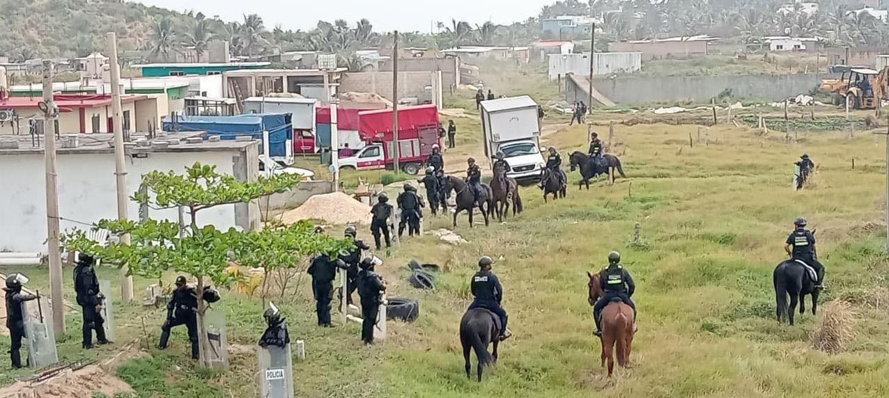 En un operativo con personal antimotines, policías a pie y caballo, así como el uso de maquinaria pesada, fueron desalojadas varias familias de un predio conocido como Ampliación Los Almendros de Coatzacoalcos.