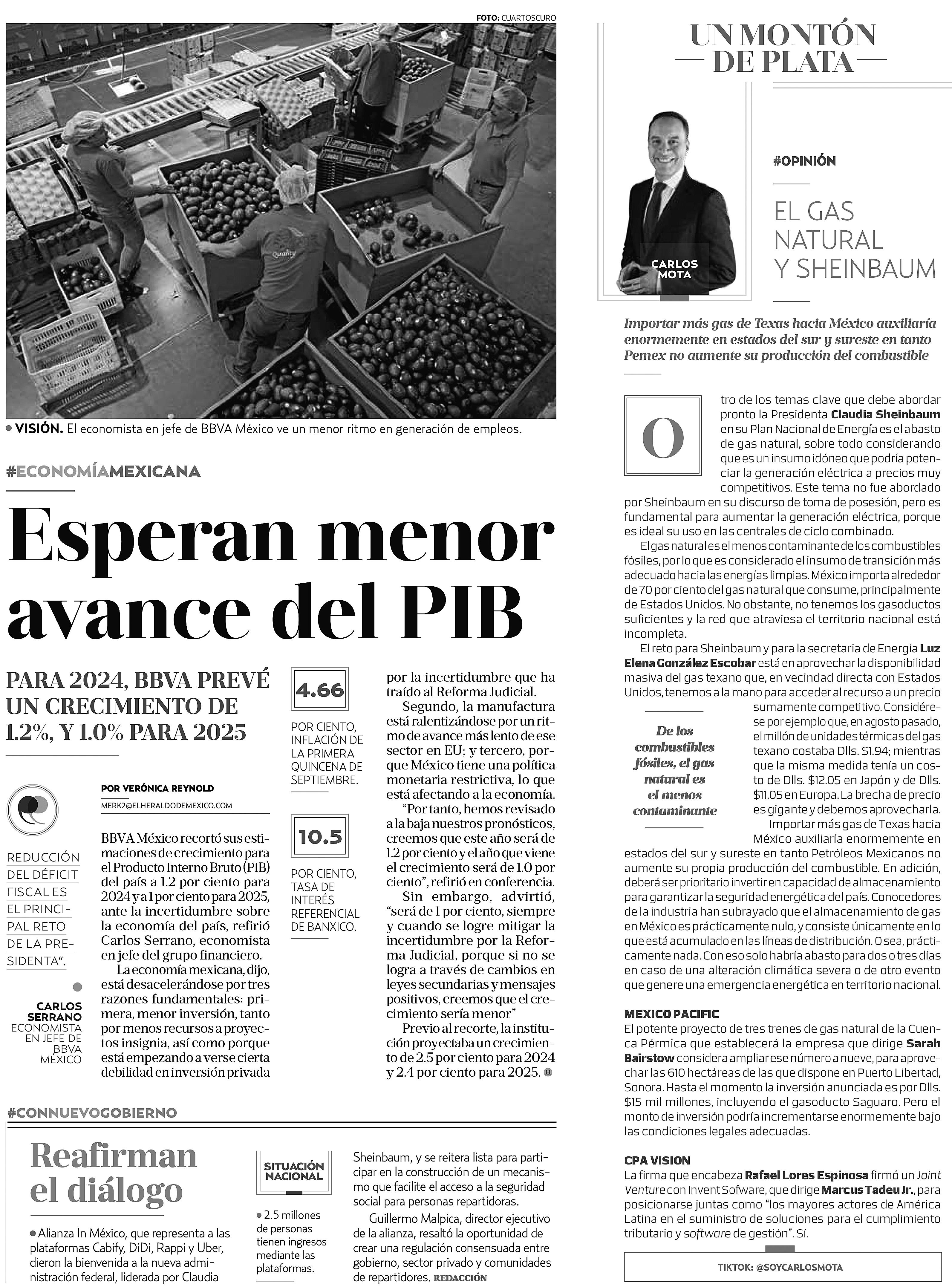 “Desafortunadamente, el tema del impulso a la productividad lo veo ausente, no hubo ningún planteamiento en los 100 puntos que anunció la semana pasada la presidenta Sheinbaum, no se habló de un sistema, campaña o promoción a la capacitación laboral ni de mejorar los procesos productivos para aumentar la productividad, lo que va a limitar el incremento en los ingresos laborales en el futuro”, destacó el investigador.