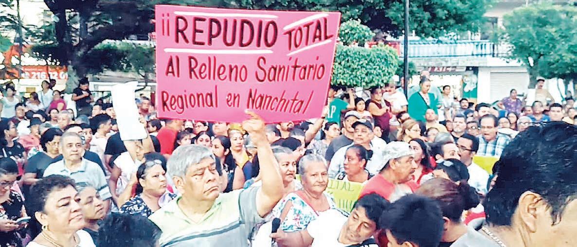 Al grito de “No al basurero de Nanchital” y “No al relleno sanitario regional en Nanchital” ciudadanos de ese municipio