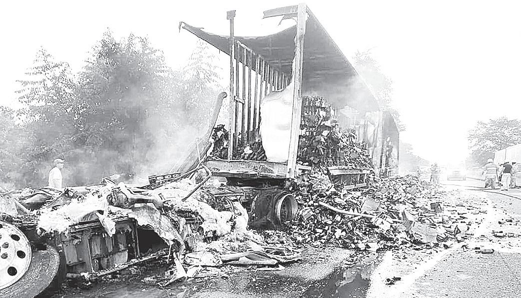 remolque continuó su trayecto metros adelante, para incendiarse totalmente.
