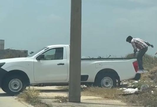 Se trata de una camioneta Nissan color blanca sin logo de alguna empresa y con placas XG 9153-B, que se estacionó de reversa en la banqueta de la avenida Jirafas. En el metraje se puede ver como una persona desde la batea arroja los desechos, mientras que el conductor espera que termine de tirar la basura para retirarse del lugar. Hasta el momento se desconoce si las autoridades municipales han sancionado a este u otros conductores que tiran la basura en terrenos baldíos.