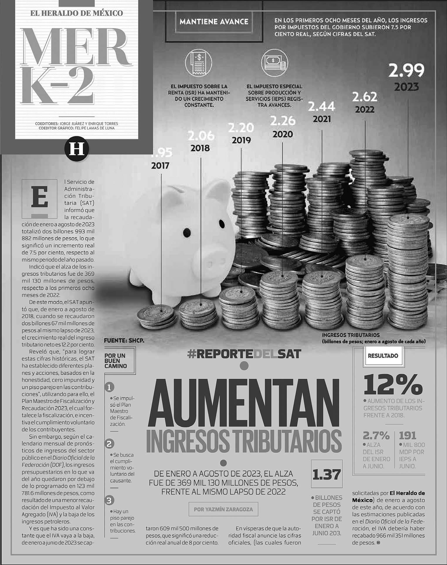 Lo anterior significa que el mayor gasto, sobre todo en programas sociales, como el de las pensiones, y para proyectos insignia, seguirá sustentándose en la eficiencia recaudatoria y el combate a la evasión de impuestos, destacó Villarreal.