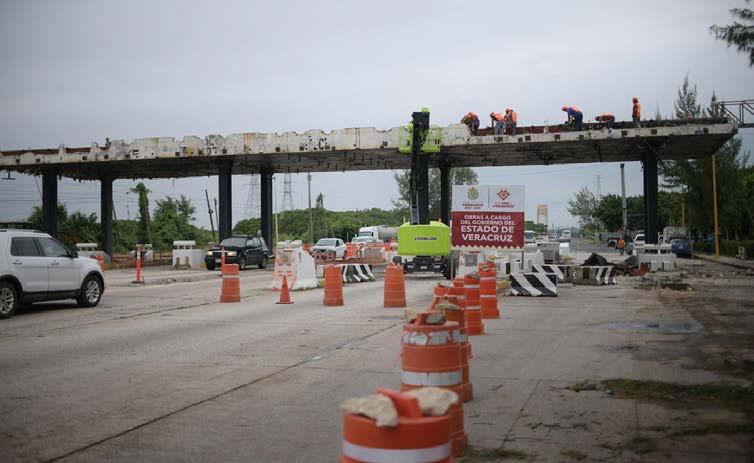 La gobernadora de Veracruz, Rocío Nahle García, acompañada por el secretario de Infraestructura y Obras Públicas, Leonardo Cornejo Serrano, supervisó el retiro de la caseta Puente Coatzacoalcos I, que presenta un avance del 85 por ciento.