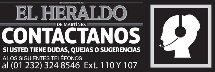 Gerente de Marketing L.C. Laura Ortiz Torres EL HERALDO DE MARTINEZ es una publicación diaria de lunes a sábado. Viernes 10 de Octubre de 2025 | Año 7 | No. 2342 | Editor responsable Ing. Eduardo Sánchez Macías. Número de certificado de Reserva de Derecho al Uso Exclusivo del Titulo 04-2017-090412182000-101. Certificado de Licitud 17081. Certificado de Licitud de Contenido 17081. Domicilio de la publicación, impreso y distribuido por Empresas Franes, S.A. de C.V., con domicilio en Boulevard Rafael Martínez de la Torre No. 168. Esq. 22 de Noviembre, Col. San Manuel, Martínez de la Torre, Ver., C.P. 93600. Tels.:(01 232) 324-85-46, 324-4676, 373-15-95, Fax 324-85-47