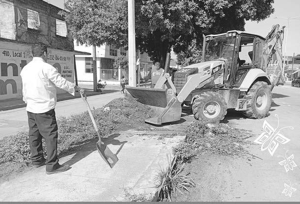 Realizan limpieza de áreas verdes, recolección de basura y mantenimiento de camellones