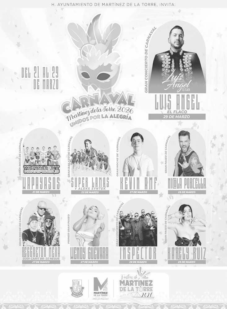 El H. Ayuntamiento de Martínez de la Torre informa a comerciantes, expositores y emprendedores que se encuentran disponibles para su venta los espacios comerciales dentro de las instalaciones de la Expo, así como bardas publicitarias para el Carnaval Martínez de la Torre 2026, evento que se realizará del 21 al 29 de