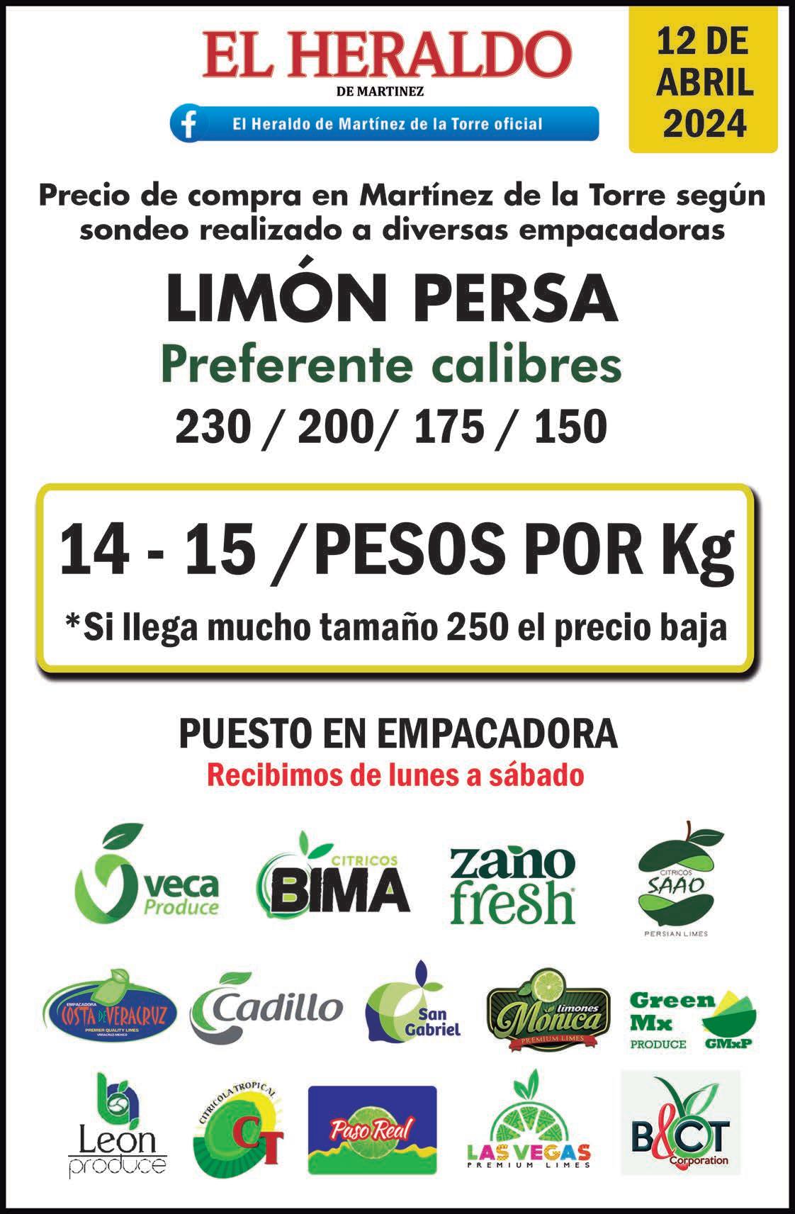 Presidente del Consejo Editorial Dr. Rubén Pabello Rojas Gerente administrativo L.C. Laura Ortiz Torres Director General Ing. Stalin Sánchez Macías Subdirector Sergio Guillén Fernández Jefe de Talleres Gildardo Daniel Flores Gerente de Marketing L.C. Laura Ortiz Torres EL HERALDO DE MARTINEZ es una publicación diaria de lunes a sábado. Viernes 12 de Abril de 2024 | Año 6 | No. 1878 | Editor responsable Ing. Eduardo Sánchez Macías. Número de certificado de Reserva de Derecho al Uso Exclusivo del Titulo 04-2017-090412182000-101. Certificado de Licitud 17081. Certificado de Licitud de Contenido 17081. Domicilio de la publicación, impreso y distribuido por Empresas Franes, S.A. de C.V., con domicilio en Boulevard Rafael Martínez de la Torre No. 168. Esq. 22 de Noviembre, Col. San Manuel, Martínez de la Torre, Ver., C.P. 93600. Tels.:(01 232) 324-85-46, 324-4676, 373-15-95, Fax 324-85-47