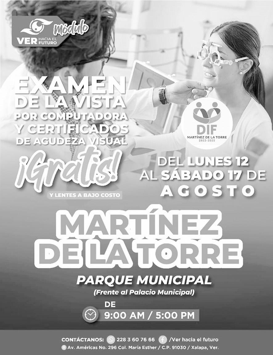 Con el objetivo de seguir apoyando a la población a tener una mejor calidad de vida, el Sistema DIF Municipal, que preside la señora Socorro Arias Marín, continúa trabajando de la mano de empresas de gran corazón, por lo que invita al módulo “Ver hacía el futuro”, que se instalará en la explanada del Parque José María Mata, con servicio de examen de la vista -gratuita- y lentes graduados -a muy bajo costo- para las personas que lo requieran.
