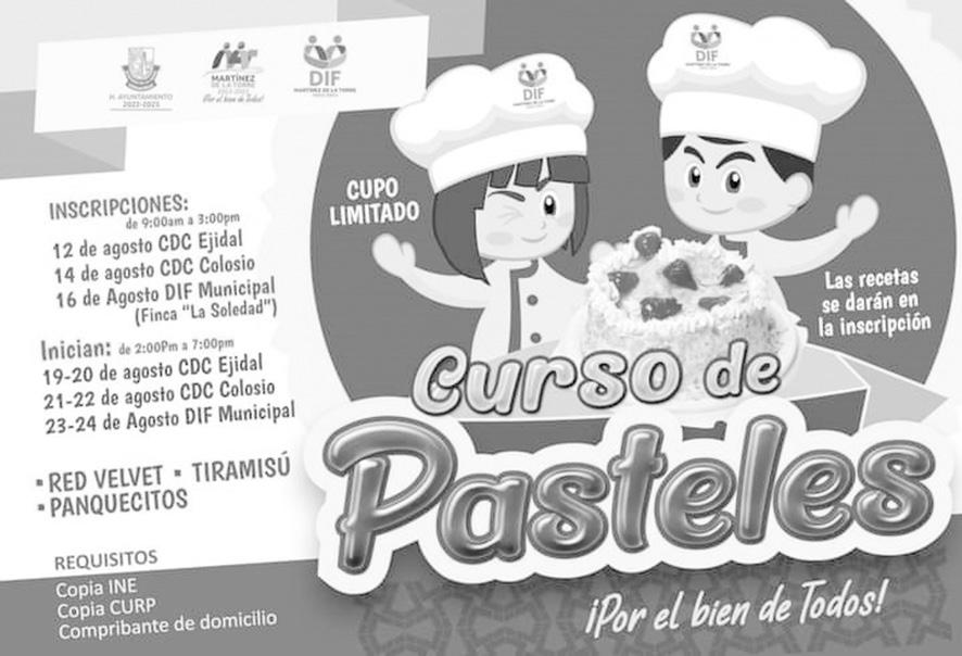 El Sistema Municipal para el Desarrollo Integral de la Familia -DIF-, invita al Curso de Pasteles que se llevará a cabo en los Centros de Desarrollo