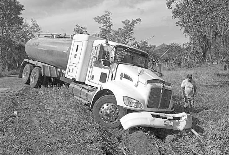 La falta de precaución del conductor de una unidad pesada, provocó la salida de camino de una pipa de la empresa Nestlé.