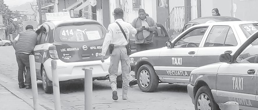 Par de taxista protagonizan percance vial en el centro de Misantla