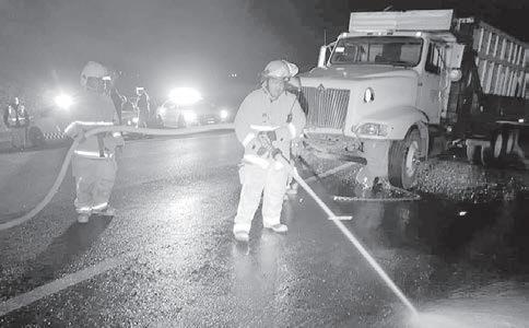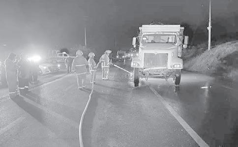 Mientras tanto los volcanes realizaron la tarea de limpieza de la carretera para quitar todo el líquido o combustible que se derramó sobre la cinta asfáltica.