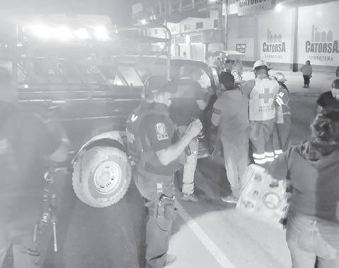 Al sitio acudieron Técnicos en Urgencias Médicas de la Cruz Roja Mexicana quiénes se hicieron cargo de brindarle la atención prehospitalaria, solo presentaron golpes leves y heridas abrasivas.