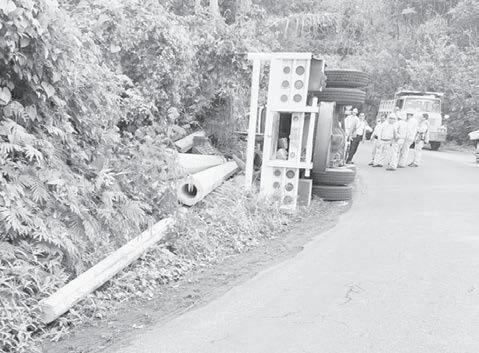 un camión perteneciente a la Comisión Federal de Electricidad (CFE) que transportaba postes de concreto que estaban destinados para ser instalados en la zona.