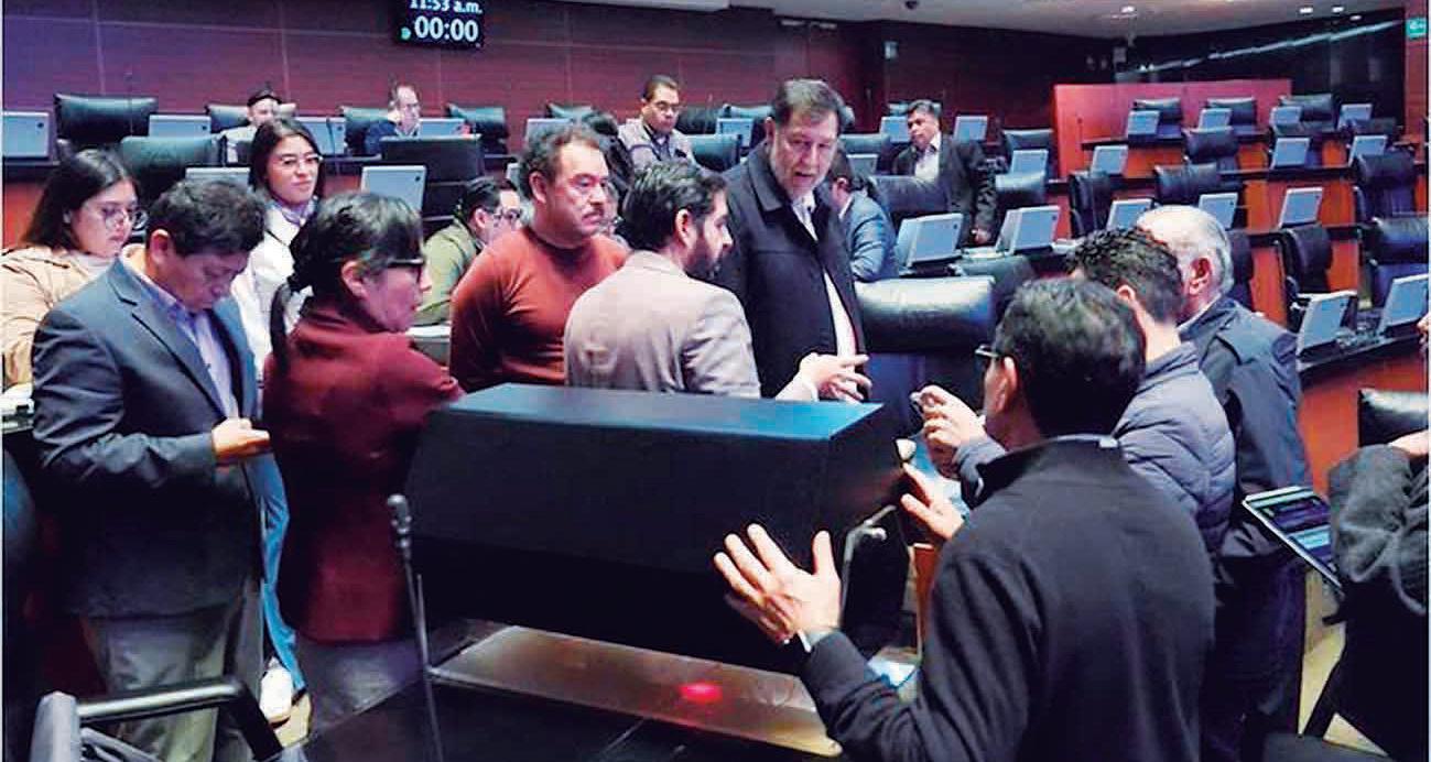 En sus redes sociales, Fernández Noroña publicó cuatro fotografías de los aspectos del salón de plenos previos a la sesión sabatina y agregó: