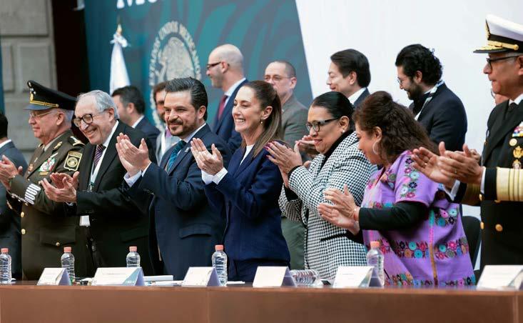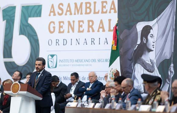 Octavio de la Torre de Stéffano, refrendó el compromiso del sector empresarial para seguir uniendo esfuerzos con el Gobierno de México con el objetivo de garantizar que la salud pública sea un sistema que brinde servicios con calidad y calidez a todos los mexicanos. A la 115ª Asamblea General Ordinaria del IMSS asistieron, la secretaria de Gobernación, Rosa Icela Rodríguez Velázquez; el secretario de Salud, David Kershenobich Stalnikowitz; el secretario de la Defensa Nacional, general Ricardo Trevilla Trejo; el secretario de Marina, almirante Raymundo Morales Ángeles; la secretaria de las Mujeres, Citlalli Hernández Mora; la secretaria del Bienestar, Ariadna Montiel Reyes; la secretaria de Anticorrupción y Buen Gobierno, Raquel Buenrostro Sánchez; la secretaria de Ciencia, Humanidades, Tecnología e Innovación, Rosaura Ruiz Gutiérrez; el secretario del Trabajo y Previsión Social, Marath Bolaños López; el secretario de Educación Pública, Mario Delgado Carrillo. La consejera jurídica del Ejecutivo Federal, Ernestina Godoy Ramos; la coordinadora general de Asuntos Intergubernamentales y Participación Social, Leticia Ramírez Amaya; el titular de la Agencia de Transformación Digital y Telecomunicaciones, José Antonio Peña Merino; el director del IMSS Bienestar, Alejandro Svarch Pérez; la directora general de la Comisión Federal de Electricidad, Emilia Calleja Alor; y el director general de la Comisión Nacional del Agua, Efraín Morales López. Las y los gobernadores, Aguascalientes, María Teresa Jiménez Esquivel; de Baja California Sur, Víctor Manuel Castro Cosío; de Campeche, Layda Sansores San Román; de Chiapas, Eduardo Ramírez Aguilar; de Chihuahua, María Eugenia Campos Galván; de Coahuila, Manolo Jiménez Salinas; la jefa de Gobierno de la Ciudad de México, Clara Brugada Molina; de Colima, Indira Vizcaíno Silva; del Estado de México, Delfina Gómez Álvarez; de Guanajuato, Libia Dennise García Muñoz Ledo; de Guerrero, Evelyn Salgado Pineda; de Hidalgo, Julio Menchaca Salazar; de Nayarit, Miguel Ángel Navarro Quintero; de Nuevo León, Samuel Alejandro García Sepúlveda; de Oaxaca, Salomón Jara Cruz; de Querétaro, Mauricio Kuri González; de Quintana Roo, María Elena Lezama Espinosa; de Sonora, Francisco Alfonso Durazo Montaño; de Tabasco, Javier May Rodríguez; de Tamaulipas, Américo Villarreal Anaya; de Tlaxcala, Laura Cuéllar Cisneros; de Veracruz, Rocío Nahle García y de Zacatecas, David Monreal Ávila. Así como, el presidente de la Cámara de Diputados, Sergio Carlos Gutiérrez; el presidente de la Cámara de Senadores, Gerardo Fernández Noroña; el secretario general del Instituto Mexicano del Seguro Social y secretario de esta Asamblea General, Jorge Gaviño Ambriz; el presidente de la Confederación de Cámaras Industriales de los Estados Unidos Mexicanos, Alejandro Malagón; el secretario general del SNTSS, Rafael Olivos Hernández; el director general de Afore XXI Banorte, David Razú Aznar; el presidente de la H. Comisión de Vigilancia del IMSS, José Héctor Tejada Shaar; el secretario general de la Confederación Revolucionaria de Obreros y Campesinos (CROC), Isaías González Cuevas.