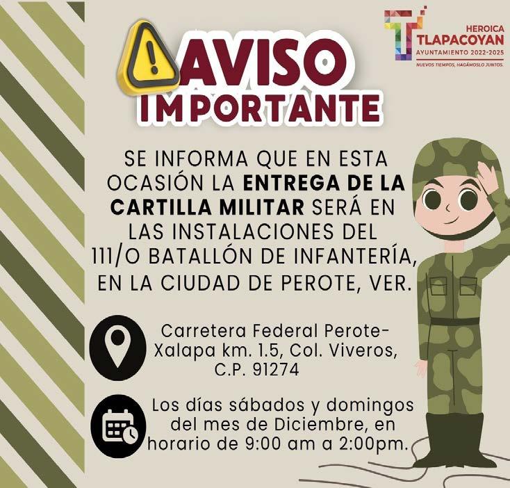 domingos correspondientes al mes de diciembre del 2024, deberán acudir al Batallón de infantería 111 con sede en el municipio de Perote.