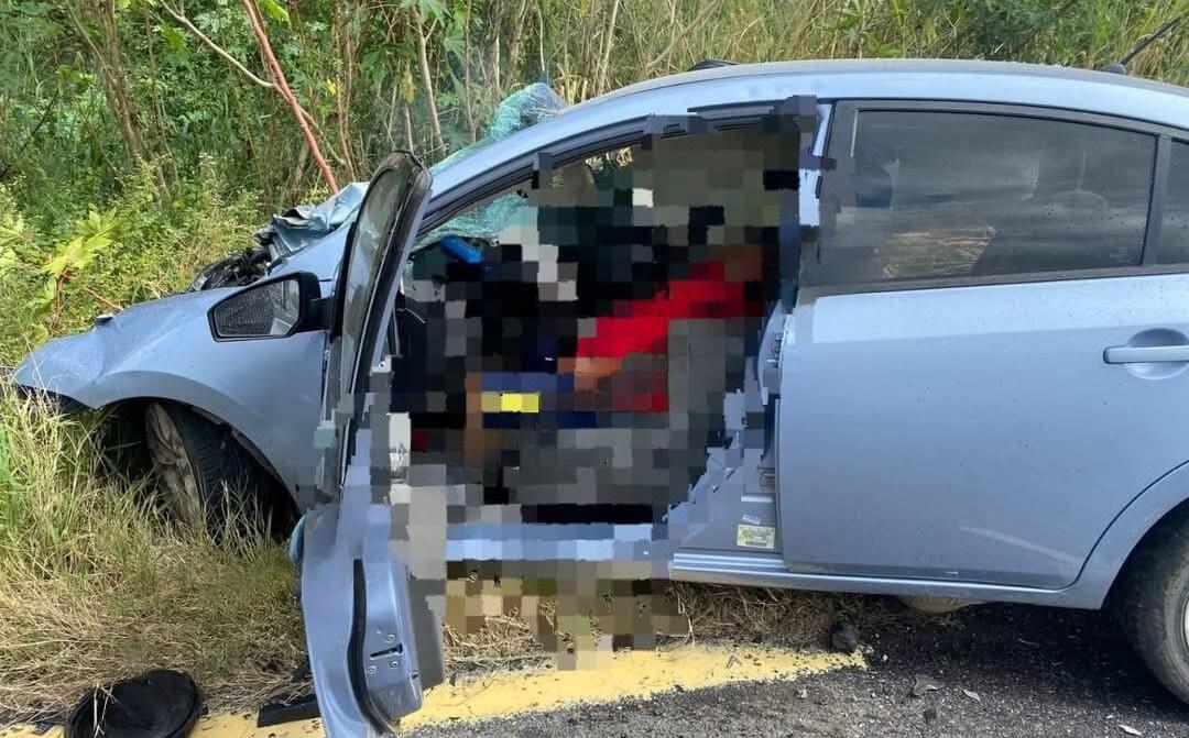 Con tremenda herida cortante en la pierna derecha, resultó la joven identificada como Ana Patricia después de estrellar la motocicleta en la que viajaba contra un automóvil Volkswagen, de la línea Pointer, color arena. El accidente ocurrió a las 11:18 horas sobre el bulevar