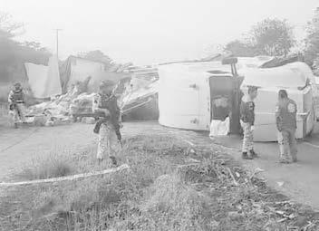El tráiler volcó sobre la carretera federal 145 Tinaja-Cd. Alemán tramo Tierra Blanca, Veracruz, por lo que el tráfico fue detenido intermitentemente con dirección de Tierra Blanca al amate con fluidez en un solo carril de