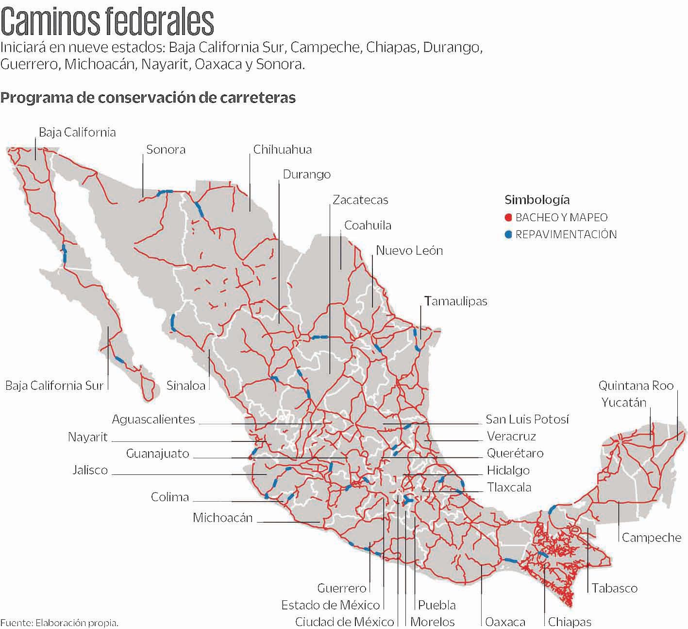 También efectuará labores de repavimentación, en las que se atenderán 631 kilómetros, empleando a mil 500 trabajadores; los trabajos iniciarán en