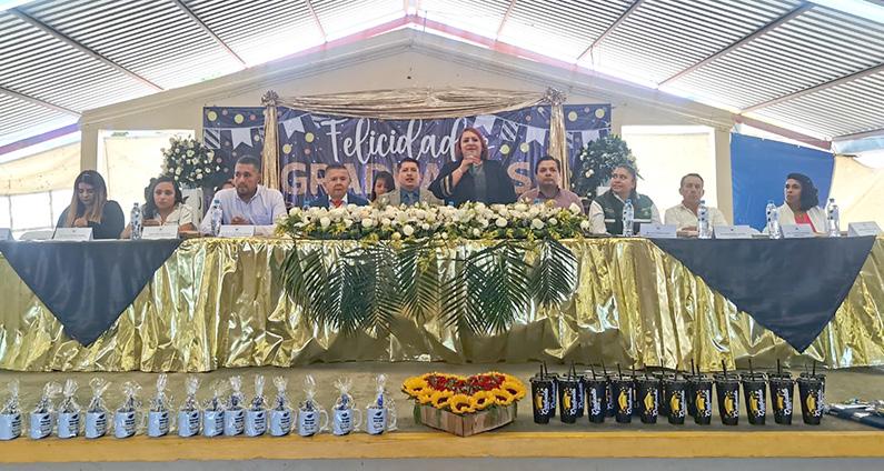 Autoridades educativas y municipales asistieron a la Ceremonia de Graduación 2020-2023, en donde el presidente Salvador Murrieta Moreno fue el padrino de seis estudiantes, quienes dan término a sus estudios de nivel básico, como parte al escalafón dentro de la etapa educativa.