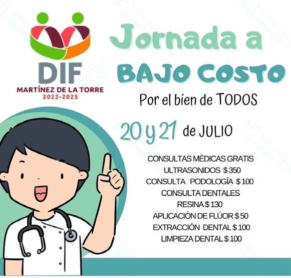 El Sistema Municipal para el Desarrollo Integral de la Familia -DIF- que preside la señora Socorro Arias Marín, invita a la población en general a la Jornada de Salud, a bajo costo, que se realizará los días 20 y 21