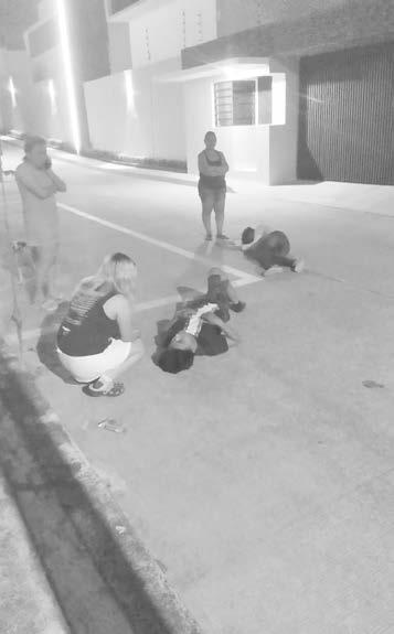 sitaba por la vía cuándo repentinamente una camioneta, de color blanco con negro y qué transportaba rejas para limón en color verde, impactó a la pareja motorizada lo que ocasionó que el conductor de la unidad de dos ruedas perdiera el control y terminaron derrapando.