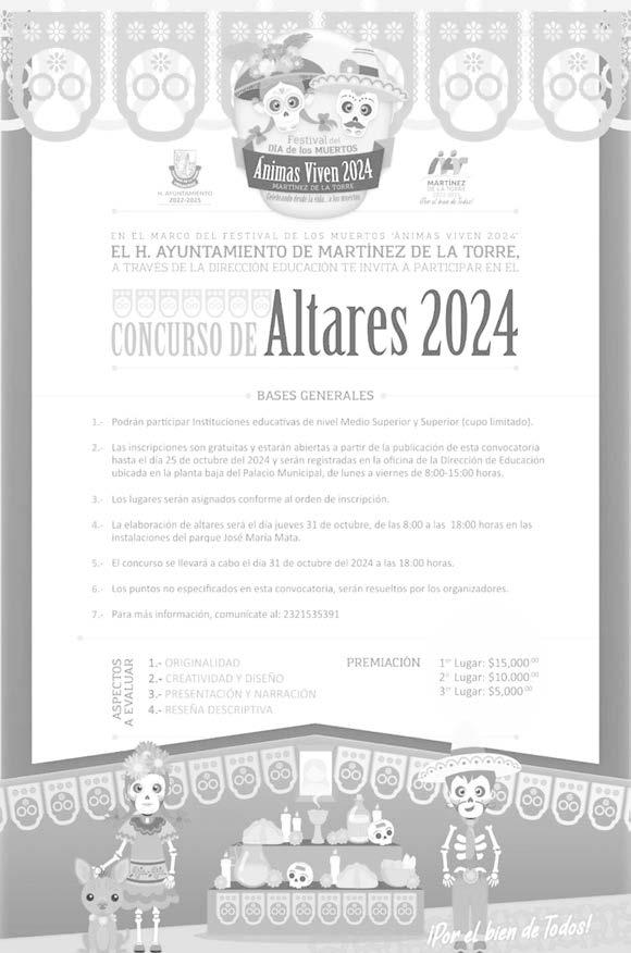 - En el marco del Festival de los Muertos “Ánimas Viven 2024”, el Gobierno Municipal, a través de la Dirección Educación te invita a participar en el “Concurso de Altares 2024”.