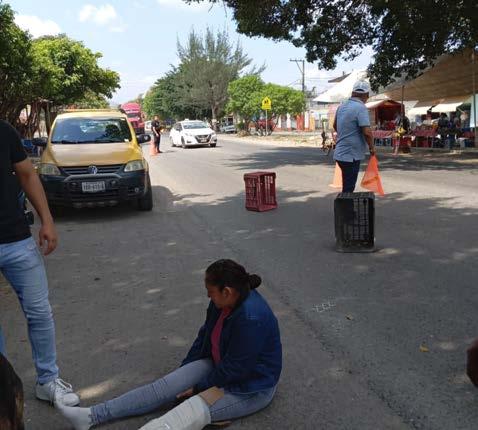 Comprobable fractura de tibia y peroné, así como golpes contusos, resultó una femenina después de caer de una motocicleta en movimiento, minutos después de derrapar el motociclista que conducía la unidad donde ella viajaba la abandonó a su suerte.