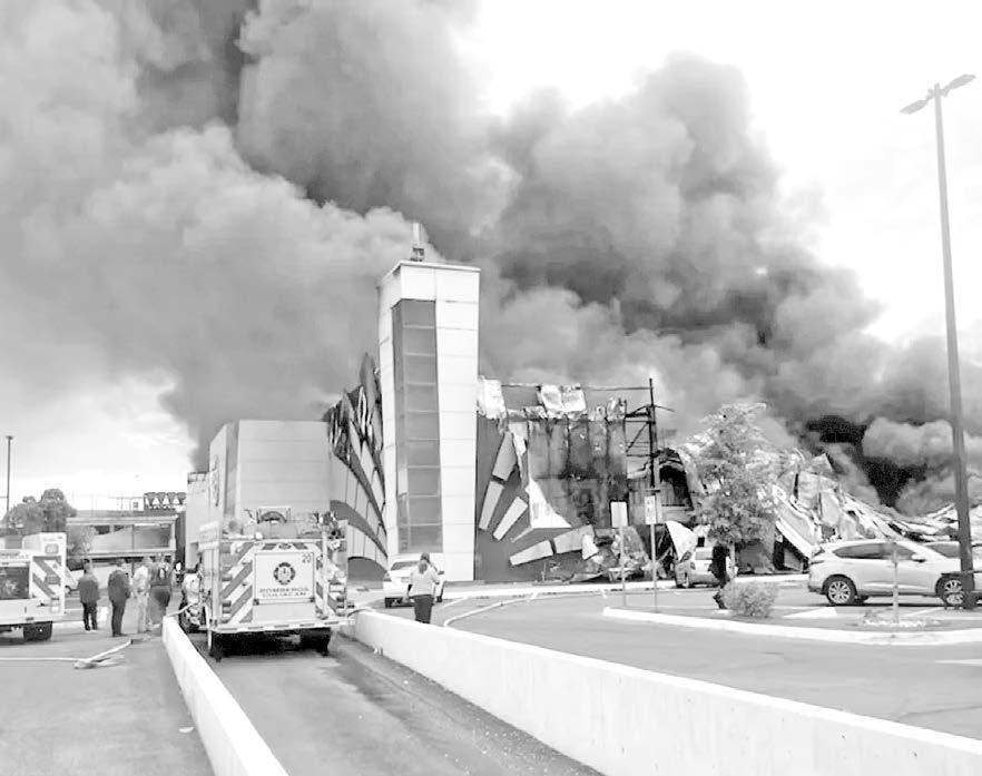 En la plaza comercial denominada Cinepolis, ubicada por el bulevar Pedro Infante, a dos calles del Congreso del Estado, el antiguo inmueble de un casino, donde hoy opera el negocio denominado Air Jump Trampoline Park, se incendió y las llamas derrumbaron parte de la estructura.