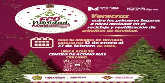 Con el objetivo de promover el cuidado del medio ambiente y el manejo responsable de los residuos naturales, el H. Ayuntamiento de Martínez de la Torre, en coordinación con la Secretaría de Medio Ambiente (SEDEMA), puso en marcha la Campaña Eco Navidad 2026. A través de esta iniciativa, se invita a la ciudadanía a darle un nuevo propósito a sus árboles naturales de Navidad, participando en la jornada de recolección de pinos, la cual permitirá