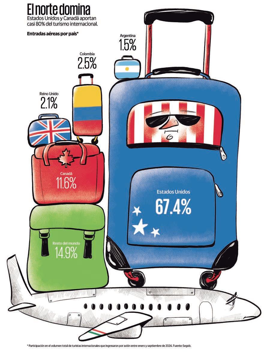 Madrid recuerda que Estados Unidos es el principal mercado para el turismo en México: “No es que los estadounidenses estén viajando menos, pues entre enero y octubre incrementaron sus viajes al exterior por avión en más de 9%, pero no están viniendo a México. En verano, por ejemplo, viajaron de manera muy importante hacia Europa”.