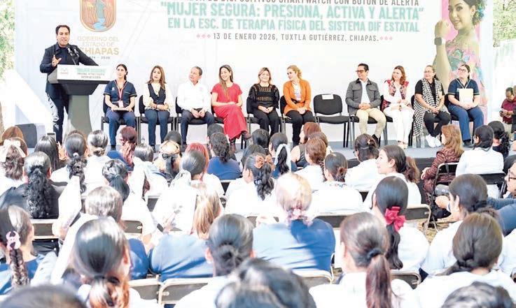 su administración impulsa acciones preventivas para que niñas, adolescentes y mujeres vivan en entornos seguros y libres de cualquier forma de violencia. En ese sentido, anunció que estos dispositivos tecnológicos se entregarán en todas las instituciones de educación superior, con el objetivo de ampliar la cobertura de beneficiarias. Asimismo, exhortó a las y los jóvenes a cuidarse, evitar conductas de riesgo y contribuir a la construcción de un Chiapas más seguro.