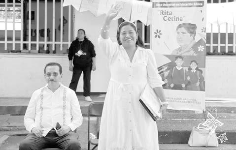 Benito Juárez García, a solicitud de los directores de ambos turnos para verificar las necesidades de este plantel educativo. El funcionario federal, flanqueado por la maestra