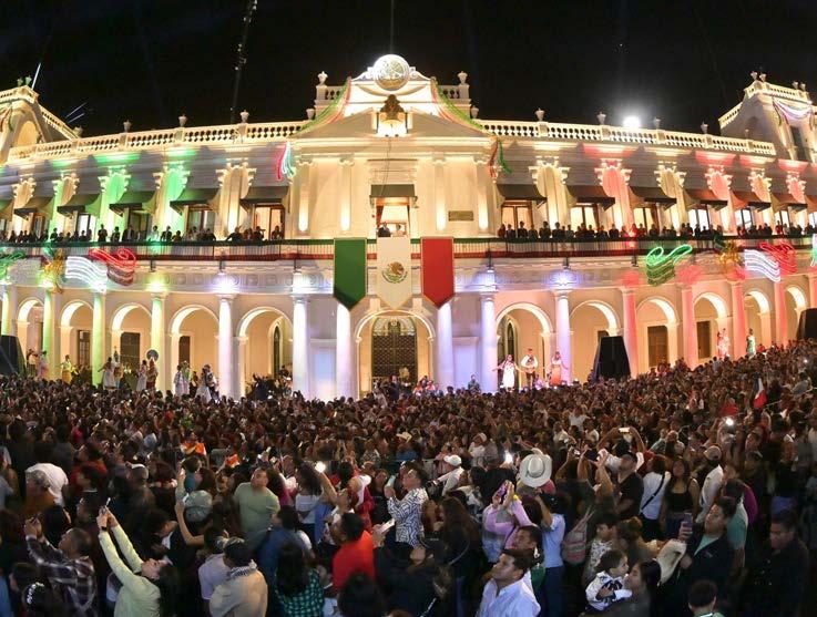 Acto seguido la comitiva se dirigió a Palacio Municipal donde la verbena ya había iniciado y en punto de las 11 de la noche llegó el momento esperado, al igual que a nivel federal con la Presidenta de México Dra. Claudia Sheinbaum Pardo y en el