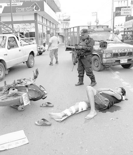 Por no frenar al llegar a un tope, motociclista se estrella detrás de un taxi, grave de salud fue llevado a un hospital