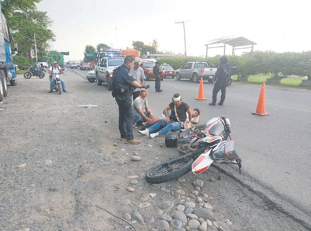 en el rostro, mientras que el piloto de la unidad dos ruedas identificado como Lorenzo Aburto presentó una probable fractura en uno de sus pies por lo cual fue necesaria la movilización de paramédicos, al lugar arribaron unidades avanzadas de Comisión Nacional de Emergencias y Ambulancias Bonilla para iniciar la atención, posteriormente elementos de Protección Civil y Bomberos se hicieron cargo del traslado al Hospital de esta ciudad para su atención médica.