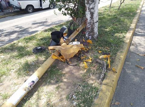 Trascendió que el imprudente motociclista identificado como Alfredo Badillo, de 25 años de edad y vecino de la colonia Altamirano, terminó con ambas muñecas fracturadas, mientras que su caballo de acero quedó destrozado de la llanta y rin delantera.