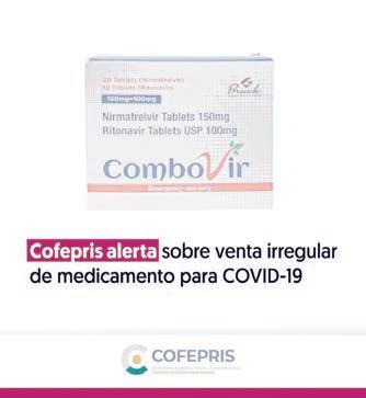 La Comisión Federal para la Protección contra Riesgos Sanitarios (Cofepris) alertó sobre la comercialización ilegal de Combovir (nirmatrelvir 150 mg / ritonavir 100 mg) tabletas, fabricado por Bruck Pharma Private Limited, para el tratamiento de Covid19.
