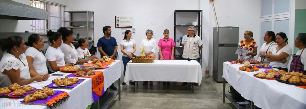 La presidenta de este organismo, Socorro Arias Marín, felicita a 135 personas, entre mujeres y hombres, que concluyeron satisfactoriamente el curso de elaboración de “Pan de Muerto” en las instalaciones del CDC y DIF Municipal.