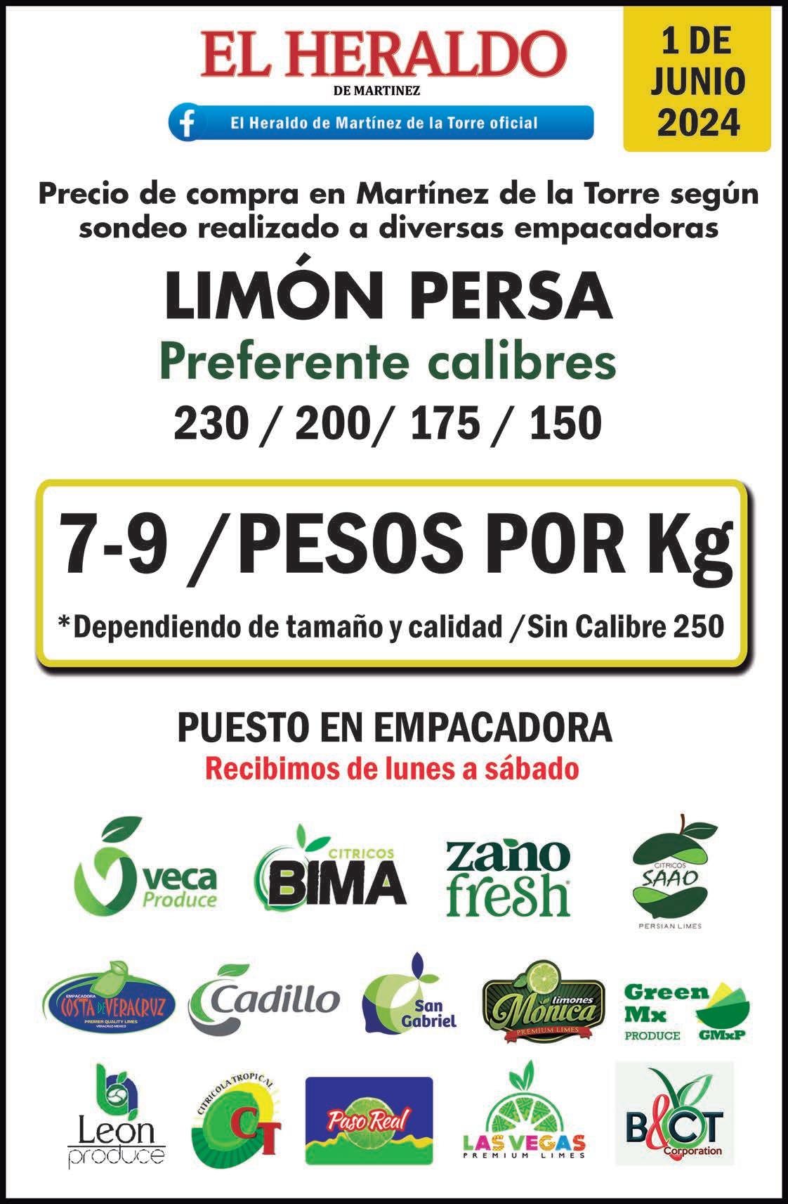 HERALDO DE MARTINEZ es una publicación diaria de lunes a sábado. Sábado 1 de Junio de 2024 | Año 6 | No. 1920 | Editor responsable Ing. Eduardo Sánchez Macías. Número de certificado de Reserva de Derecho al Uso Exclusivo del Titulo 04-2017-090412182000-101. Certificado de Licitud 17081. Certificado de Licitud de Contenido 17081. Domicilio de la publicación, impreso y distribuido por Empresas Franes, S.A. de C.V., con domicilio en Boulevard Rafael Martínez de