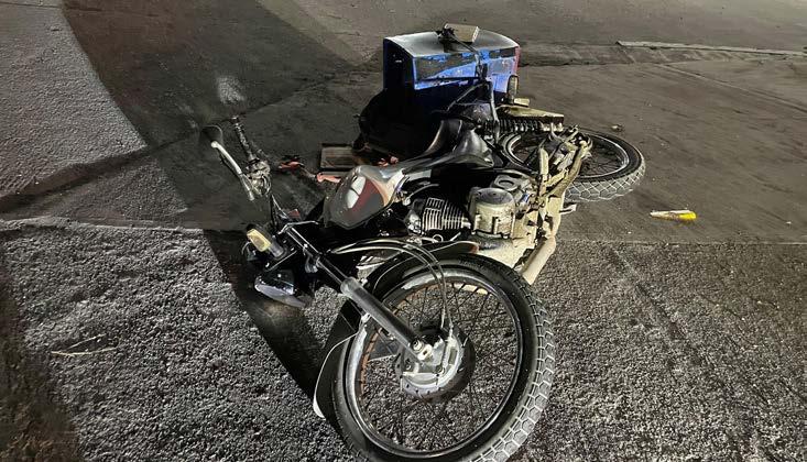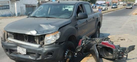 Trató de ganarle el paso a una camioneta y provocó accidente, se dio a la fuga abandonando la moto