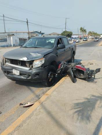 culación XZ-1059-A del estado, el cual su conductor frenó, pero de igual forma resultó dañada de la parte frontal al colisionar con el imprudente motociclista. Al sitio acudió una patrulla de la Guardia Nacional quién tomó conocimiento de lo sucedido y ordenó el traslado de las utilidades al patio de su corporación.