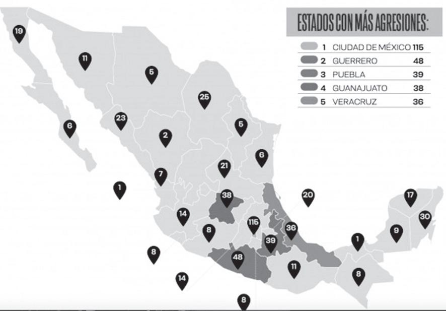 Después de Veracruz aparecen en la lista Baja California, Coahuila, Chihuahua, Sinaloa, Durango, Oaxaca, Sonora, Ciudad de México y Tlaxcala, por mencionar algunos estados de la República Mexicana.