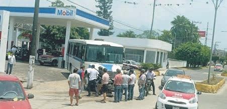 pasajeros de la línea Autotransportes Banderilla salía de la gasolinera y no se percató que venía un motociclista, por lo que lo arrolló.