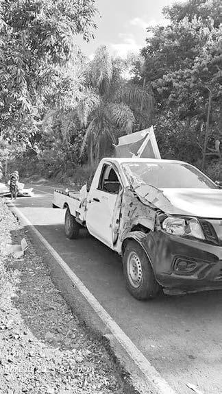 Se trata de una camioneta Nissan de 3 toneladas propiedad de la empresa Barcel, la que se salió de la carretera dejando el producto tirado.
